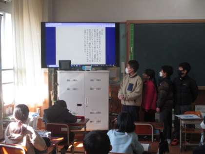 先週,3年生はロイロノートを使って,学校じまんについて発表会をしました。