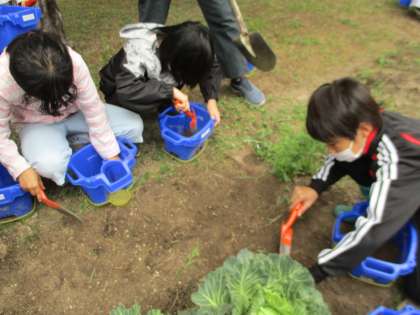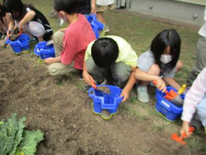 種まきにむけての土作りでは,久しぶりに土の感触を楽しんだり,幼虫を見つけてとても喜んでいました。雑草抜きや,活動後の掃き掃除もみんなでがんばりました。