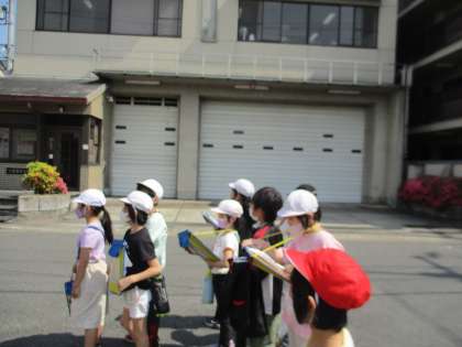 今日は2回目の校区探検をしました。校区の南方面を歩き,いろいろなお店や施設などを見つけたり,地図で確認したりしていました。