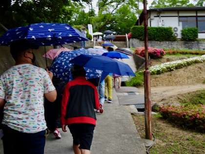 宿の裏手にある円通寺の周辺を散策しました。あいにくの小雨ですが,朝の空気なら包まれて海を臨む高台まで歩きます。