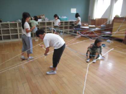 色々なひもからイメージをふくらませ、とても楽しい世界をつくっていました。ダイナミックに想像をふくらませ、友達と協力しながら学習していました。