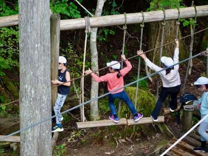 全身の力を使って立ちはだかるアスレチックフィールドに挑みます。