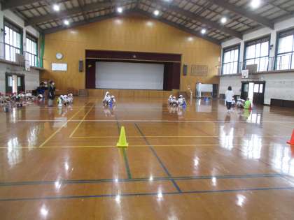 雨で外の運動場が使えない時は、体育館で練習しています。この日は、場所の確認などを行いました。教室でも並び順を覚えたりダンスの練習をしたりいそがしい日を過ごしています。本番までがんばっていきます。