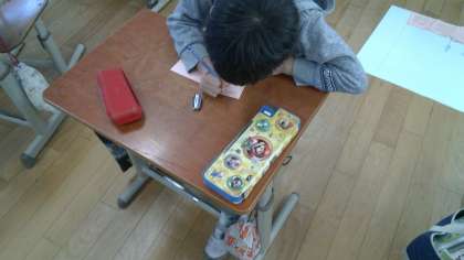 各学年の演技、競技を見せてもらい、お礼の気持ちや感想を、メッセージカードに書いて届けました。全学年にメッセージを書くことで「小さい学年の時は、こんなことをがんばっていたんだな」と思い出したり「高学年になったら、こんなふうになりたいな」と見通しを持ったりして、全校のみんなのがんばりを思い浮かべ、考えることができました。