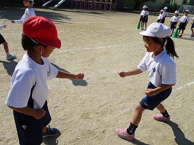 自分の陣地を守ったり、相手の陣地を攻めたりする遊びで、どんじゃんけんほいやエスけん、じんとりおにごっこなどをしました。