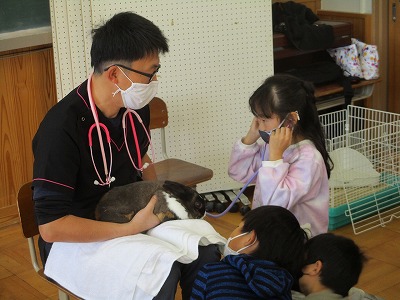 また、うさぎを抱っこさせてもらったり、心臓の音を聞かせてもらったりしました。