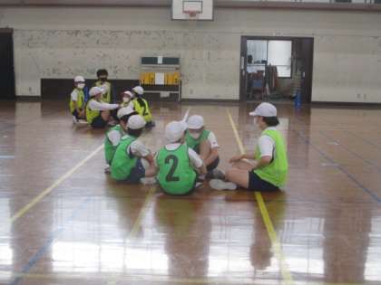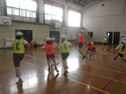 5年生はバスケットボールに取り組んでいます。