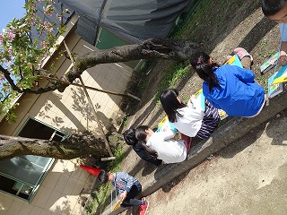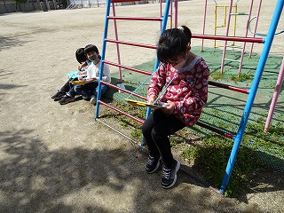 春の陽気を感じながら,みんなで楽しく花や虫の絵を描きました。