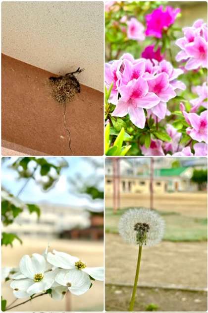 学校のあちらこちらに「春」があります。あっと言う間に過ぎてしまう「春」ですが、子どもたちにも、この季節の移ろいを感じてほしいですね。