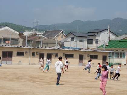休み時間には、楽しそうにいっしょにおにごっこをして遊んでいました。