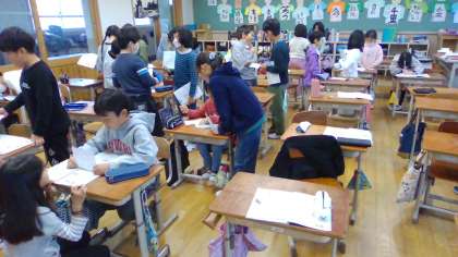 いろいろな国の言葉であいさつを学習しました。日本と同じようにあいさつがあり、それに続けて、自己紹介をしました。好きなもの、嫌いなものを英語で交流したところ、「Nice.」「Thank you.」などの言葉が自然にあふれてきました。