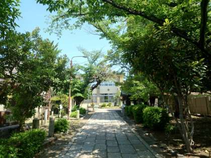 翔鸞小学校の正門を入ると敷石がしばらく続きます。