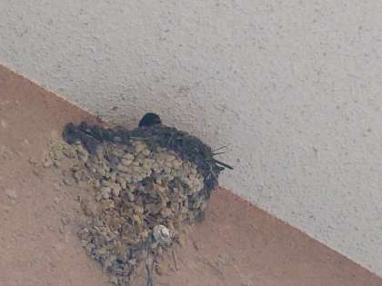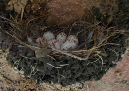 今日の朝、ネットの新聞紙を替えるときに親鳥が巣を離れたので巣の中の様子がどうなっているのか写真に撮ってくださいました。
