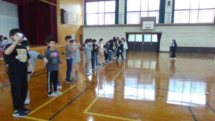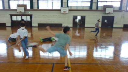 最高学年としていつもよく頑張っている六年生。苦労をねぎらう意味も込めてお楽しみ会をしました。5月ということで鯉のぼりを飛行機のように飛ばしたり、ドッジボールをしたりして遊びました。