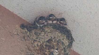 最近、ツバメの巣に他のツバメが飛んできては、巣を見回るような姿が見られました。