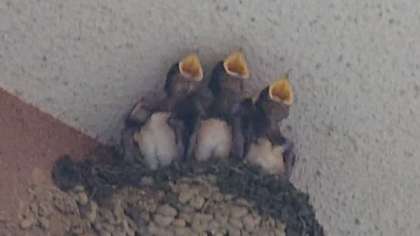 親ツバメが餌をもって帰ってきたら、一斉に口を開けておねだりしています。