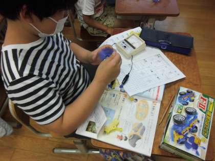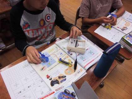 モーターが逆回りになった!はたしてこのことをどう説明すればよいのか、検流計を使って調べてみました。たしかにモーターの向きが逆になると、検流計の針は逆に振れていました。さらに学習を深め、モーターを強く回す方法を考えます。