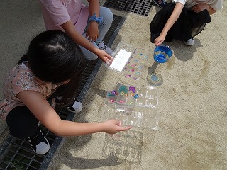 太陽の光が当たると,地面に色が移ってとても綺麗です。