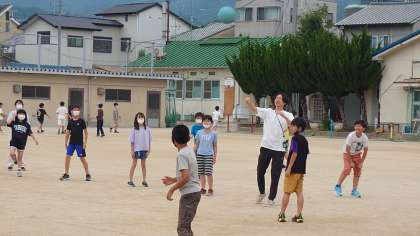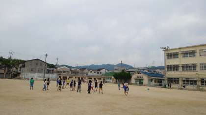 いつも、5年生はみんなでドッジボールを楽しんでいます。みんないい笑顔です。