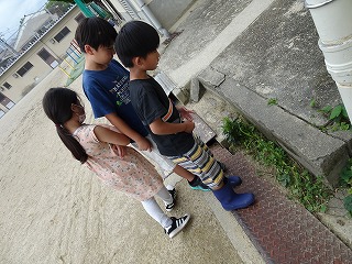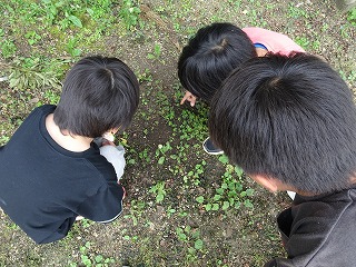 外に出ると、子どもたちはすぐに運動場の端や隅の草むらを探し始めました。
