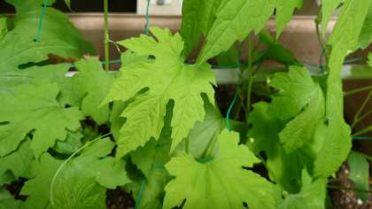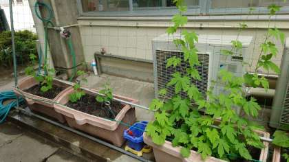 少しずつ大きくなってきました。生長すると、緑のカーテンとなって職員室南側の窓を覆ってくれると思います。
