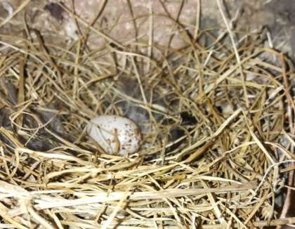 ところで、最近、新たにわらなどをもちこんでいる様子があったので「もしや!」と管理用務員さんが覗いてくださると見覚えのある模様の卵が1つ!