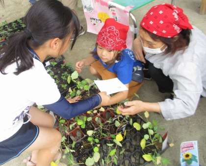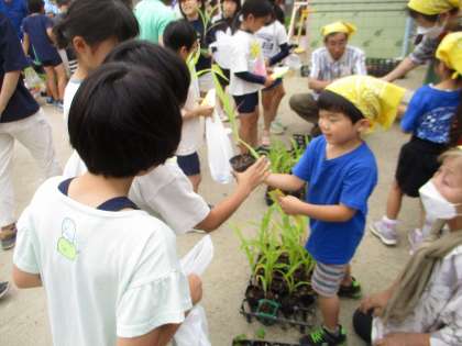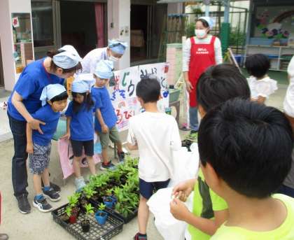 年長さんが育ててくれた苗です。ご家庭でも大切に育てていただけたらと思います。