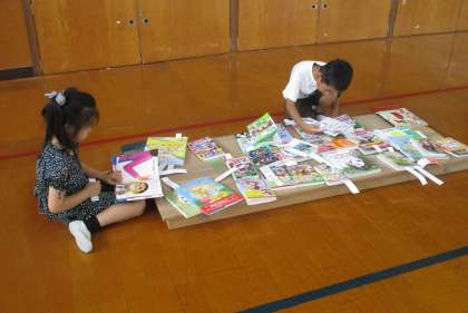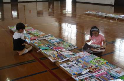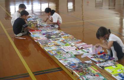 体育館に並べられたたくさんの新しい本を見て、大興奮の子どもたち。「この本、読んだことある!」「この本、家にあるよ!」と言いながら、どれにしようかな・・・と悩んで3冊選びました。どんな本が学校の図書館に並ぶのか、楽しみですね。