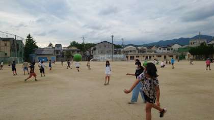 昼頃から、雨予報も出ていたからか、たくさんの子ども達が運動場で遊んでいました。