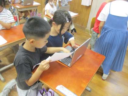今日は、初めてタブレットを使いました。2年生に電源の入れ方・切り方や写真の撮り方などを優しく教えてもらったおかげで、後半には1年生だけで少しずつ操作ができるようになりました。頼もしい2年生、本当にありがとう!!