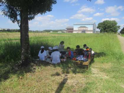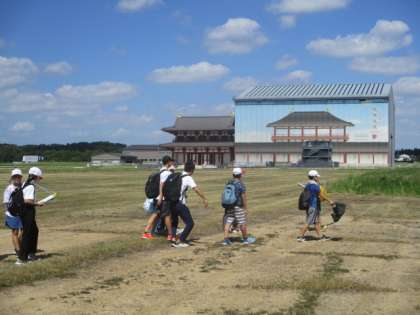 柏野小学校と合同見学です。バスの車内ではお互いの学校クイズ。平城京跡ではグループに分かれて一緒にご飯を食べるなど、交流を深めました。