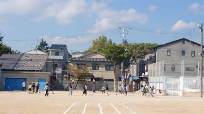 多くの子どもたちが、運動場で遊んでいました。