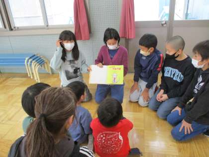 今日は、総合的な学習「生き方について考える」の一環で、保育士体験をさせていただきました。園児たちに小学校での生活を紹介したり、本の読み聞かせをしたりしました。交流会を進行するためにあらかじめ決めていた台詞を発表するだけでなく、「この本知ってる?」、「ランドセル重いね。力持ちだね、すごいすごい。」など、園児と仲良くなるためにその場その場で考えた言葉を発している姿が素敵でした。