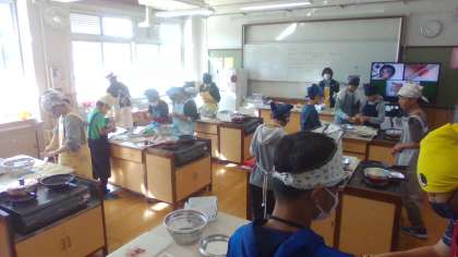 6年生は家庭科で調理実習を行いました。