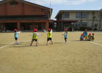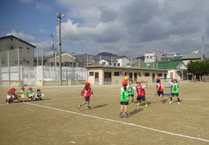 パスゲームの学習が始まりました。初めてのボールゲームなので、昨日は2年生のパスゲームを見学させてもらい、ルールや動きを理解しました。