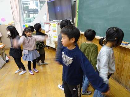 曲に合わせてあそぼながら,昔遊びの歌をみんなで楽しみました。