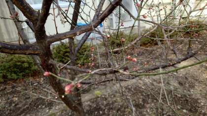 昨日は、気がつかなかったのですが、かわいい梅の花がちらほら咲いていました。