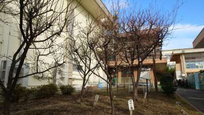 正門を入って本館玄関前を右に曲がるとミニ梅苑があります。