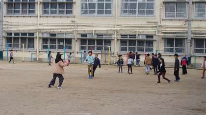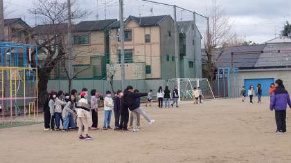 昨日からの雨で、運動場にはまだ少しぬかるみが残っていましたが、子どもたちは元気よく遊んでいました。