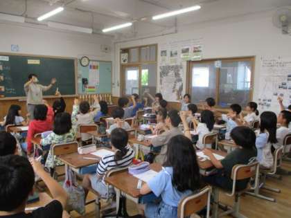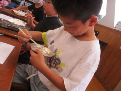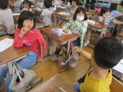 今日は、栄養教諭の山口先生に、食に関する指導をしてもらいました。今日のテーマは、「おはしの使い方」。毎日使っているおはしですが、みんな正しく使うことができるのでしょうか。