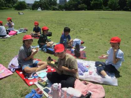 長い距離を歩いたので、到着した時には少し疲れた表情をしていましたが、お弁当を見るとみんなにっこにこになりました。みんなで美味しく楽しくお弁当をいただきました。