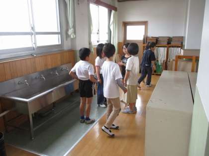 社会科では「くらしと水」の学習に入りました。くらしの中でどのように水を使っているのか、そしてどれぐらいの水を使っているのか予想を立てるために、校内の蛇口を数を数えに行きました。
