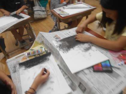 黒コンテで手が真っ黒になるのも、楽しみながら取り組んでいました。