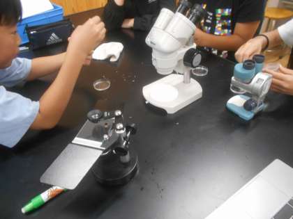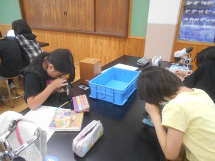 学習では、メダカの特徴を知ったり、卵の様子を顕微鏡で観察したりと大切に扱いながら進めています。
