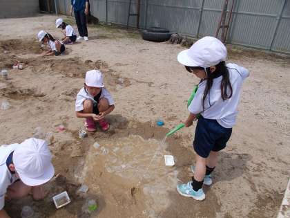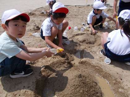 今日は図画工作科の学習を砂場で行いました。