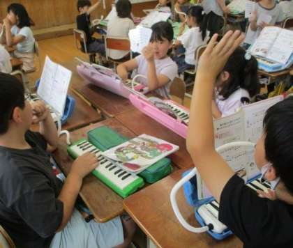 3年生は、音楽科で鍵盤ハーモニカを使って、指くぐり・指またぎの練習をしました。少し難しい指遣いですが、繰り返し練習したり、友だちと見合ったりすることで少しずつできるようになってきました!