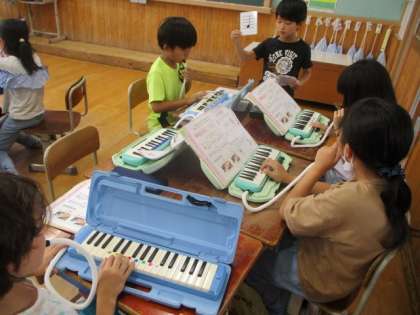 鍵盤ハーモニカにリコーダーに大変ですが、楽しく練習しています!