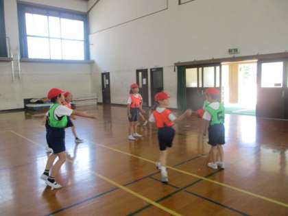 ルールを理解した後は、実際にゲーム練習をしてみました。今日は、攻めるだけの練習です。グループで上手に声をかけあって、パスを回すことができました。