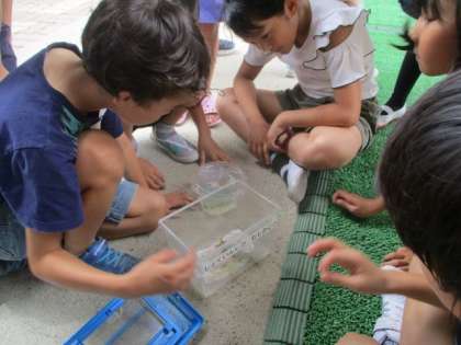 中間休みにみんなで自然に帰してあげました。長い間観察させてもらったチョウなので、少し寂しそうにしていた子どもたちですが、チョウからたくさんのことを学ぶことができましたね。