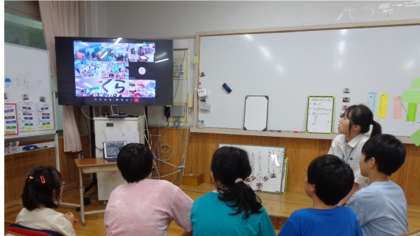 上京の育成学級の友達と、オンラインで「みんな元気会」をしました。一緒に歌を歌ったり、カラーハントクイズをしたり、ダンスを踊ったりして楽しく交流しました。